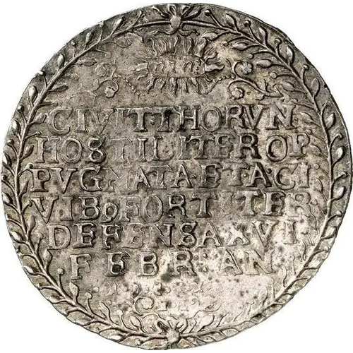 | Obverse lettering | CIVIT.THORVN. HOSTILITER OP PVGNATA.ET.A.CI VIB 9 FORTITER DEFENSA.XVI FEBR.AN. .M.D.C.X.X.I.X |