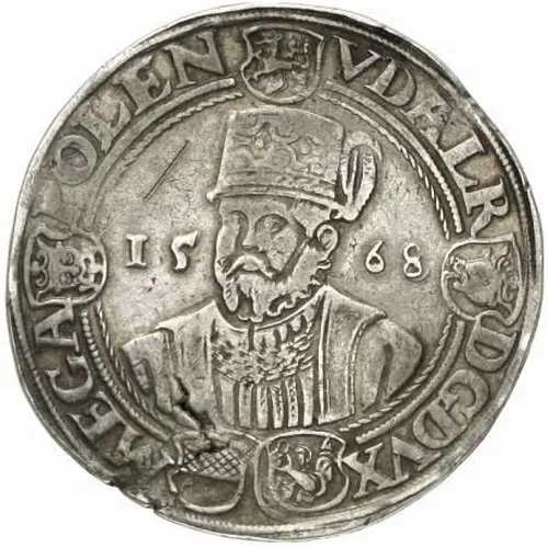 | Obverse lettering | VDALR D. G. DVX. MEGA POLEN. 15 68 |