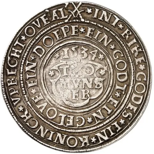 | Obverse lettering | INT. RIKE. GODES. EIN. KONINCK. VPRECHT. OVE` AL. EIN. GODT. EIN. GELOVE. EIN. DOEPE. 1534 THO MVNS TER |