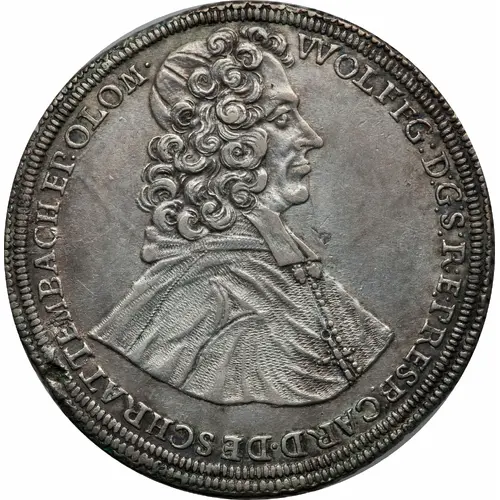 Capped bust with curly hair facing right. Legend around (starts 1h) for `Wolfgangus Dei Gratia Sacrae Romanae Ecclesiae Presbyter Cardinalis De Schrattenbach Episcopus Olomucensis` |