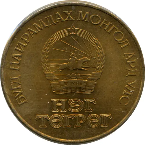 | Obverse lettering | БҮГД НАЙРАМДАХ МОНГОЛ АРД УЛС НЭГ TӨГРӨГ (Translation: The Mongolian People`s Republic One Tögrög) |