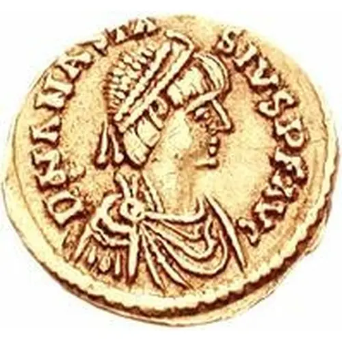 D N ANASTA - SIVS PF AVC (Translation: Dominus Noster Anastasius Perpetuus Augustus Our Lord, Anastasius, perpetual August) |