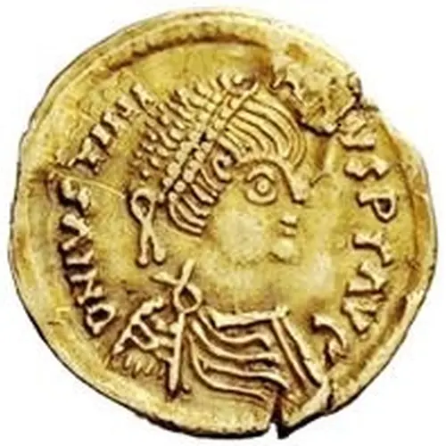 DN IVSTINI - ANVS PG AVC (Translation: Dominus Noster Justinian Perpetuus Augustus Our Lord, Justinian, perpetual August) |