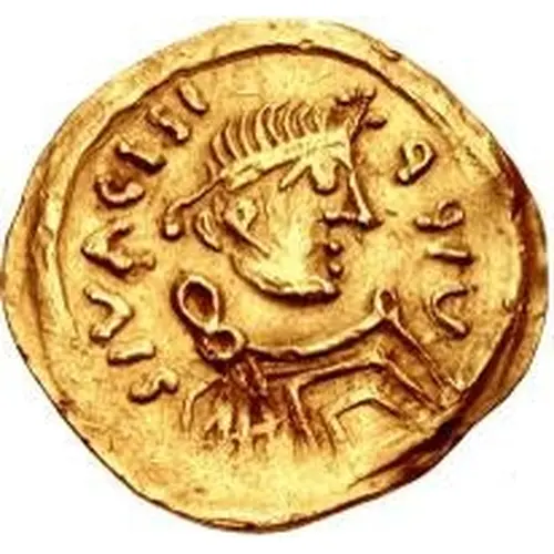 Artistry: The "messy bust" on this tremissis is characteristic of early medieval Western European coinage's artistic decline in imitation issues. Local Tuscan engravers produced dies with simplified, crude, and often disproportionate features for the obverse imperial portrait. This "barbaric" stylistic school prioritized recognition over realistic detail, departing from classical numismatic traditions. The reverse typically featured a Christian symbol, like a cross, rendered with similar abstraction, conveying a more symbolic, less naturalistic representation.