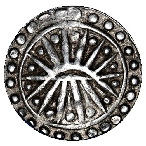 | Obverse description | `Rising sun` with six rays below and six others above a horizontal line; all in a circle of 27 points. |