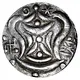 | Reverse description | Temple; on both sides, swastika and damaru; below, three globules and above, the moon and the sun. |