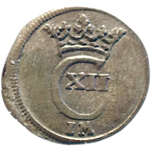 Artistry: The engraver responsible for this diminutive coin remains anonymous, a common occurrence for low-denomination wartime issues. Stylistically, the design adheres to a simplified late Baroque aesthetic, prioritizing clarity over elaborate ornamentation given its 14mm diameter. The obverse typically features a crowned C12 monogram, representing Charles XII, often accompanied by a small mintmark. The reverse presents the denomination and date in a concise, three-line legend, ensuring legibility for a coin intended for widespread daily transactions. The overall design reflects the practical demands of wartime production.