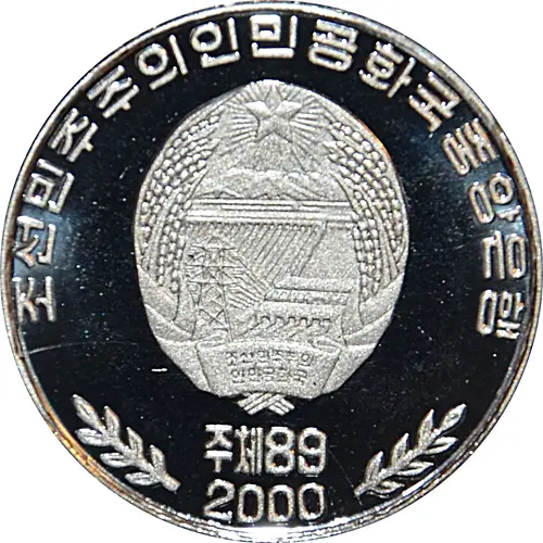 | Opschrift voorzijde | 조선민주주의인민공화국중앙은행 주체89 2000 (Translation: Central Bank of Democratic People`s Republic of Korea) |