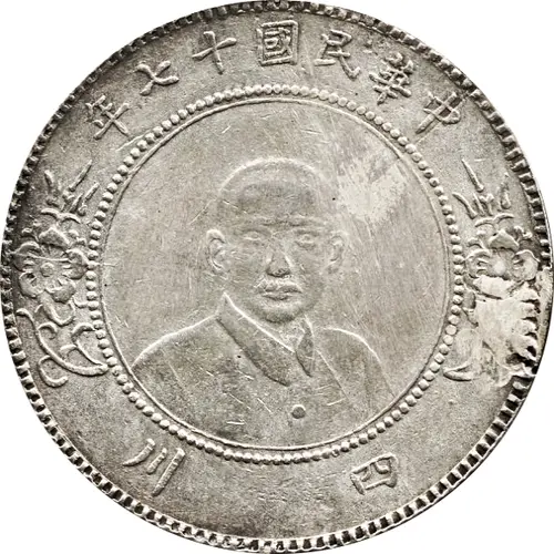 | Obverse description | Bust of Sun Yat-sen partially facing right with florals on either side, all surrounded by Chinese ideograms. |