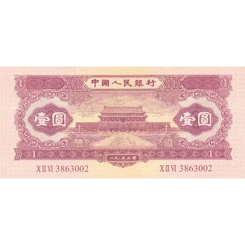 中國人民銀行 壹圓 壹圓 一九五三年 (Translation: People`s Bank of China, One Yuan, Year 1953) |