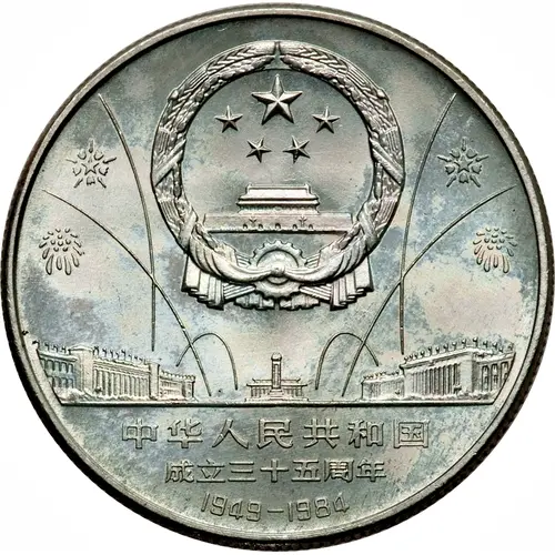 | Obverse lettering | 中华民共和国 成立三十五周年 1949 - 1984 (Translation: People`s Republic of China 35th Anniversary of Founding 1949 - 1984) |