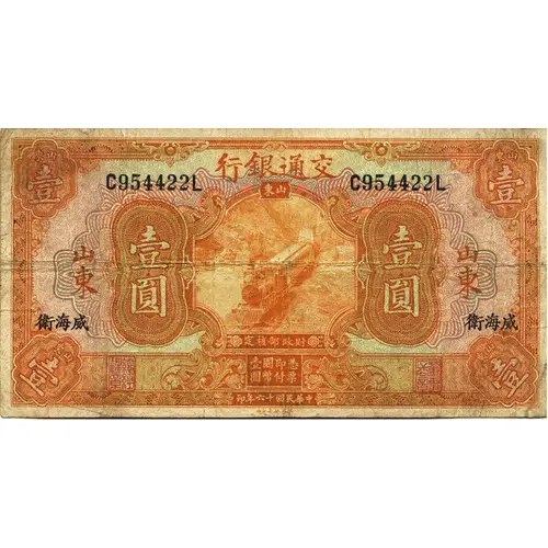 | Reverse description | Denomination in centre. Black overprint `WEIHAIWEI` bottom left and right. |