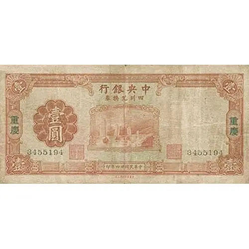 | Reverse lettering | The Central Bank of China Promises to Pay the bearer on Demand One Yuan Local Currency Chungking |