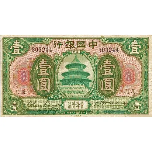 | Obverse lettering | 行银国中 壹 圓 (Translation: Bank of China One Yuan) |