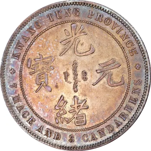 | Obverse lettering | KWANG-TUNG PROVINCE 光 ᠪᠠᡩᠠᡵᠠᠩᡤᠠ 寶 ᠶᡠᠸᠠᠨ ᠪᠣᠣ 元 ᡩᠣᡵᠣ 緒 7 MACE AND 3 CANDAREENS (Translation: Guangxu (Emperor) / Yuanbao (Original currency) Guangxu (Emperor) / Yuanbao (Original currency)) |