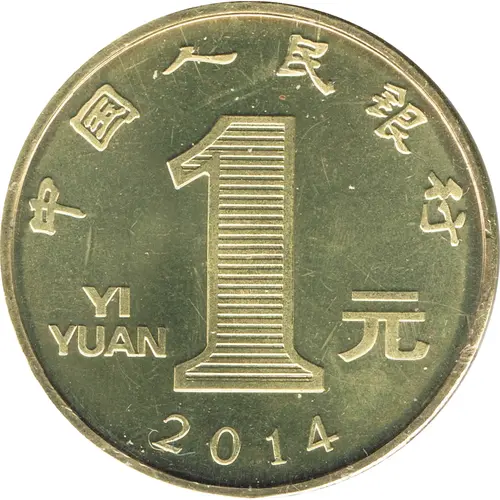 | 表面の銘文 | 中国人民银行 YI YUAN 1 元 2014 (Translation: People`s Bank of China One yuan 1 yuan) |