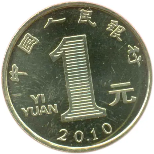 | Opschrift voorzijde | 中国人民银行 YI YUAN 1 元 2010 (Translation: People`s Bank of China One yuan 1 yuan) |