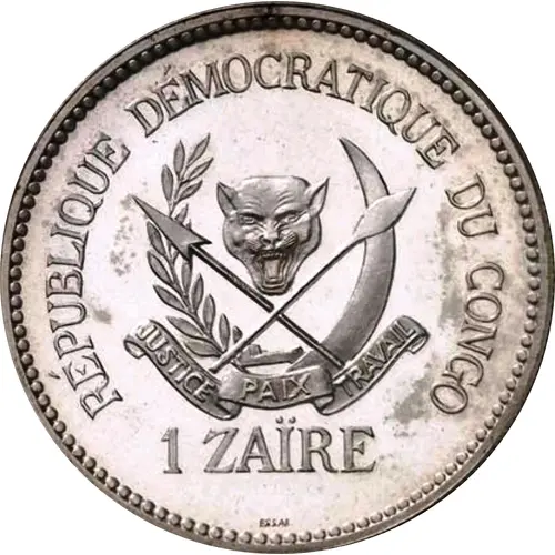 | Obverse lettering | RÉPUBLIQUE DEMOCRATIQUE DU CONGO JUSTICE PAIX TRAVAIL 1 ZAÏRE ESSAI |