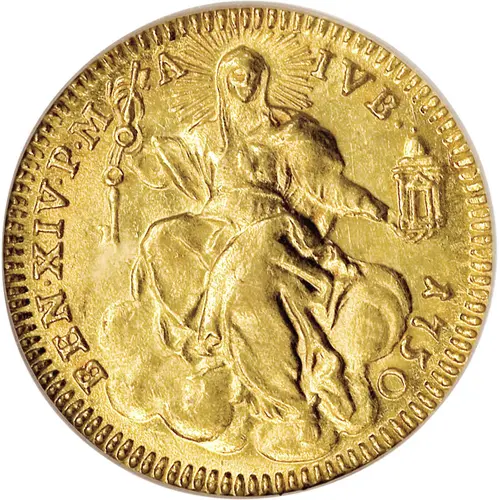BEN XIV P M A IV B 1750 (Translation: Benedict XIV, Holy Pontiff, Year 4) |