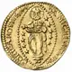 St. John standing to right, presenting the banner of the Order to the grand master kneeling to left. |
