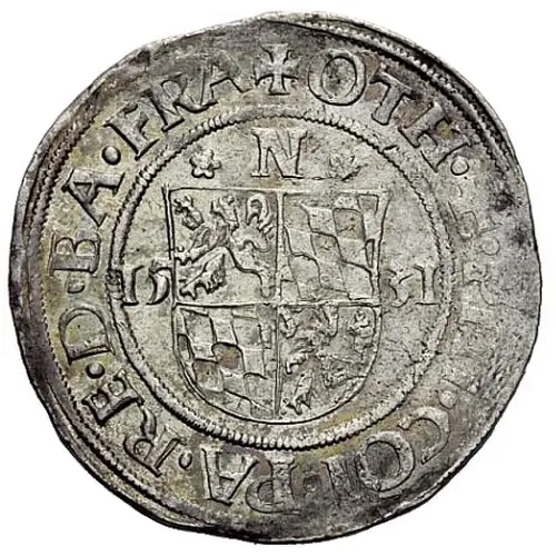 | Obverse description | 4-fold arms of Pfalz and Bavaria divide date, `N` above, all in circle, titles of 2 brothers. |