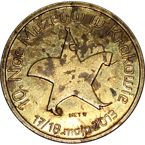 | Leyenda del anverso | 10. Noc Muzeów w Krakowie MET MW 17/18 maja 2013 (Translation: 10th Night of the Museums in Kraków, 17th/18th May 2013) |