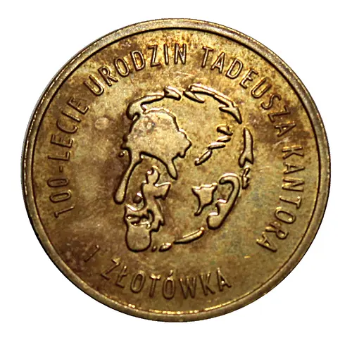 | Opis líce | 100-lecie urodzin Tadeusza Kantora 1 złotówka (Translation: 100th abbiversary of Tadeusz Kantor`s birthday 1 PLN) |