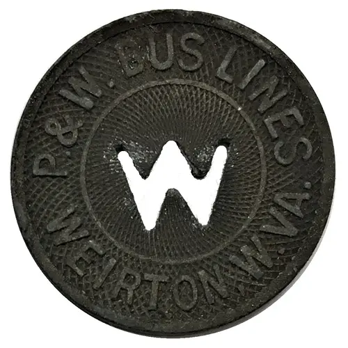 | Obverse lettering | P.&W. BUS LINES W WEIRTON, W. VA. |