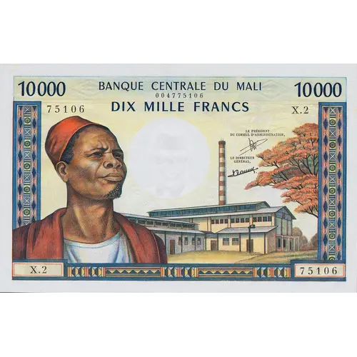 BANQUE CENTRALE DU MALI DIX MILLE FRANCS (Translation: Central Bank of Mali Ten Thousand Francs) |