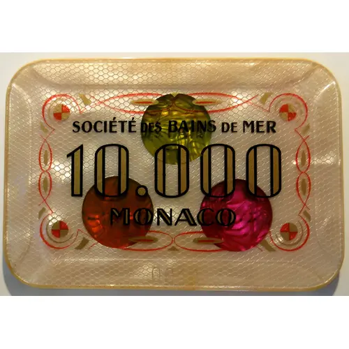| Obverse lettering | SOCIÉTÉ DES BAINS DE MER 10.000 MONACO 0011 |