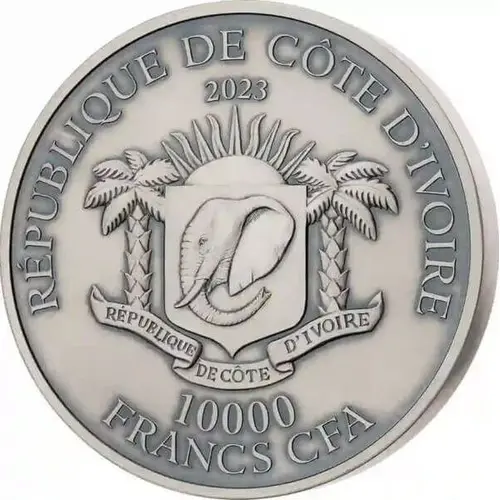 | Obverse lettering | RÉPUBLIQUE DE CÔTE D`IVOIRE 2023 RÉPUBLIQUE DE CÔTE D`IVOIRE 10000 FRANCS CFA (Translation: Republic of the Ivory Coast Republic of the Ivory Coast) |