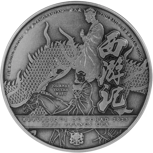 | Obverse lettering | SUN WUKONG TANG SANZANG ZHU BAJIE SHA WUJING JOURNEY TO THE WEST REPUBLIQUE DU TCHAD 2023 10000 FRANCS CFA |