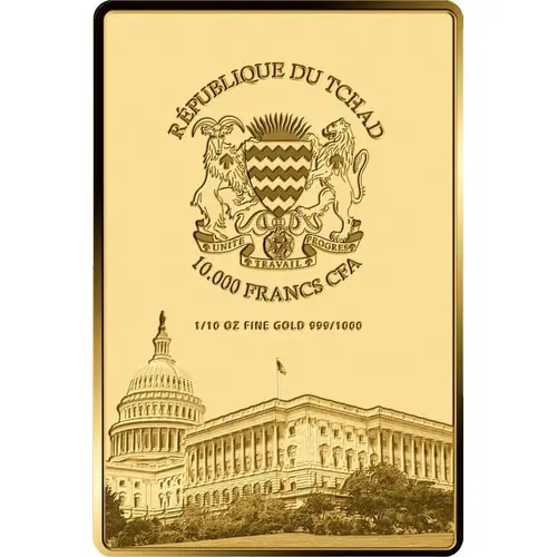| Obverse lettering | REPUBLIQUE DU TCHAD UNITE TRAVAIL PROGRES 10.000 FRANCS CFA 1/10 OZ FINE GOLD 999/1000 (Translation: Republic of Chad Unity Work Progress) |