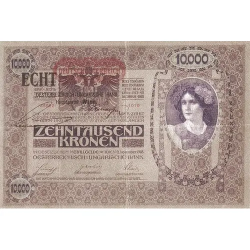 | Obverse description | Woman, Austrian arms. German text. Overprint `DEUTSCHÖSTERREICH` on AUSTRIA P#25. Additional Stamp `ECHT` (genuine) - `Oesterreichisch-ungarische Bank / Hauptanstalt Wien` on AUSTRIA P#62. |