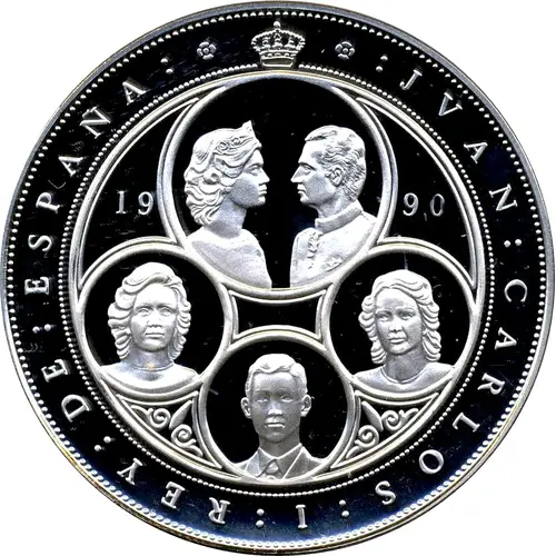 | Obverse lettering | :JVAN:CARLOS:I:REY:DE:ESPAÑA: 19 90 (Translation: Juan Carlos I King of Spain) |
