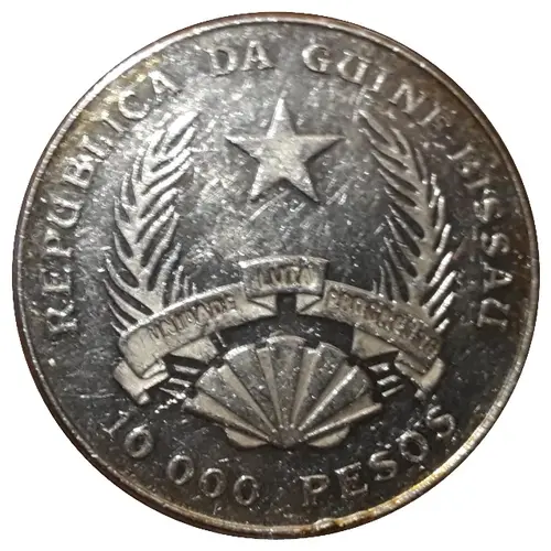 | Надписи аверса | República da Guiné-Bissau Unidade Lutá Progresso 10 000 Pesos |