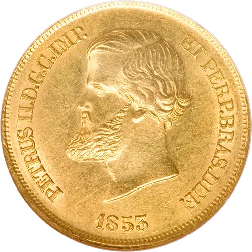 | Opis awersu | Head of Pedro II left, flanked left and right by legend: PETRUS II.D.G.C.IMP. ET PERP.BRAS.DEF. Below the head is the date of 1853. |