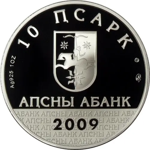 10 ҦСАРК Ag925 1OZ ММД АҦСНЫ АБАНК 2009 (Translation: 10 Apsars MMD The Bank of Abkhazia) |