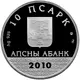 10 ҦСАРК Ag 925 ММД АҦСНЫ АБАНК 2010 (Translation: 10 Apsars Ag 925 MMD The Bank of Abkhazia) |