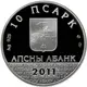 | Obverse lettering | 10 ҦСАРК Ag 925 ММД АҦСНЫ АБАНК 2011 (Translation: 10 Apsars Ag 925 MMD The Bank of Abkhazia) |