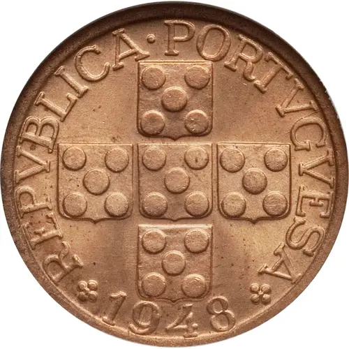 Technical/Grading: Struck in bronze, this 3-gram, 20-millimeter coin often exhibits variable strike quality. Key high-points for grading include the upper edges of the Portuguese shield and the intricate details of the quinas and castles on the obverse. On the reverse, the raised lettering of the denomination and territory name are crucial. Bronze compositions are prone to environmental damage and can show softer strikes, particularly in central elements, necessitating careful evaluation of remaining detail and surface integrity.