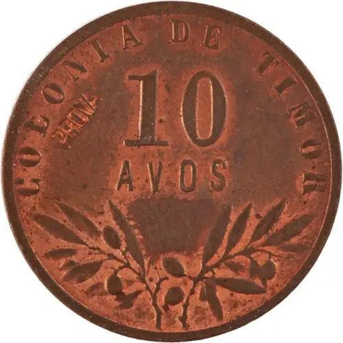 | Obverse lettering | COLONIA DE TIMOR 10 AVOS PROVA (Translation: Colony of Timor) |