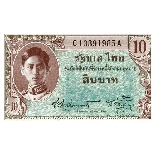 | Obverse description | Bust of King Rama VIII front-facing Phra Pathom Chedi Garuda on top left corner, three-headed-elephant Airavata on bottom-right corner, denomination on top right and bottom left corners Features in brown and light blue color, serial numbers and block numbers in black |