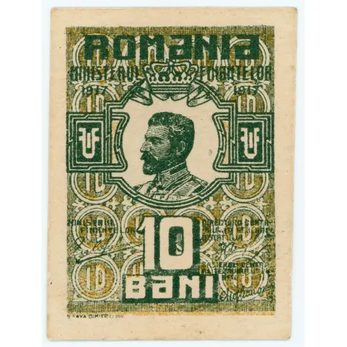 ROMANIA MINISTERUL FINANTELOR 1917 1917 10 10 10 10 10 10 10 10 10 10 MINISTRUL FINANTELOR 10 BANI DIRECTORUL CONTABILITATII Gle A STATULUI CASIERUL Gal AL TEZAURULUI PUBLIC H SAVA DIMITRIU INV. |