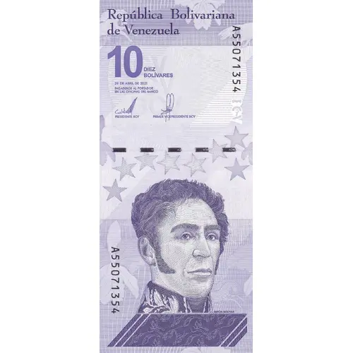 República Bolivariana de Venezuela Diez Bolívares (Translation: Bolivarian Republic of Venezuela Ten Bolívares) |