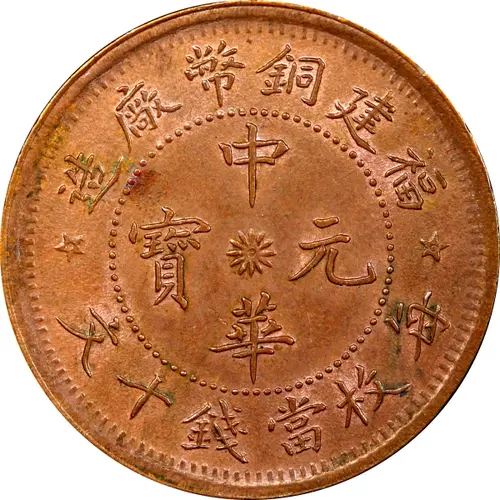 造廠幣銅建福 中 寳元 華 文十錢當枚每 (Translation: Copper coin made in the Fukien Mint China / Yuanbao (Original currency) Each 10 Cash currency is one unit) |
