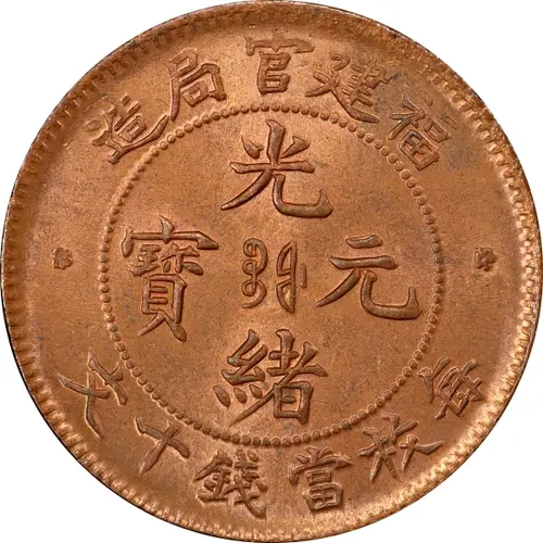 | Obverse lettering | 造局官建福 光 寶 ᠪᠣᠣ ᡶᡠ 元 緒 文十錢當枚毎 (Translation: Made at Fukien Mint Guangxu (Emperor) / Yuanbao (Original currency) Boo-fu (Fukien Mint) Each 10 Cash currency is one unit) |