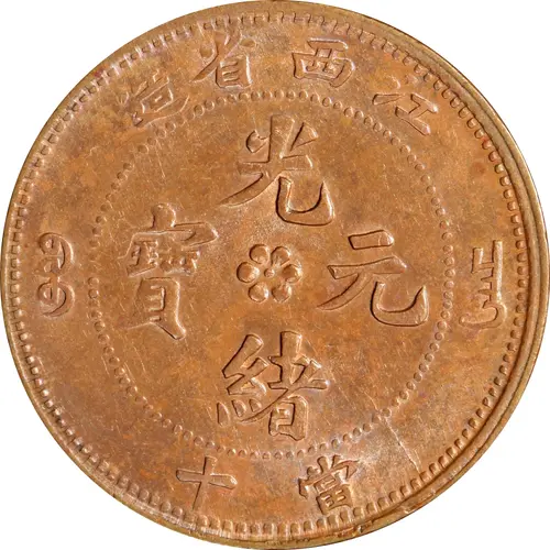 | Opschrift voorzijde | 造省西江 ᠪᠣᠣ ᠴᠠᠩ 光 寶元 緒 十當 (Translation: Made in Kiangsi Province Boo-chang (mint) Guangxu (Emperor) / Yuanbao (Original currency) Worth 10 (Cash)) |