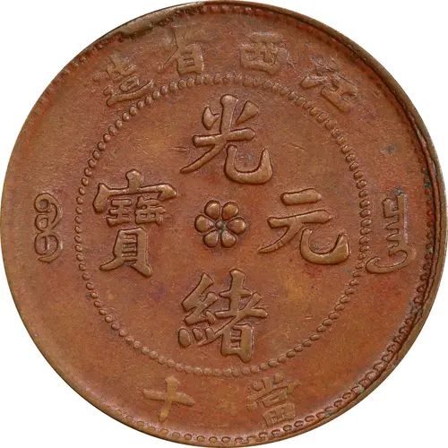 | Obverse lettering | 造省西江 ᠪᠣᠣ ᠴᠠᠩ 光 寶元 緒 十當 (Translation: Made in Kiangsi Province Boo-chang (mint) Guangxu (Emperor) / Yuanbao (Original currency) Worth 10 (Cash)) |
