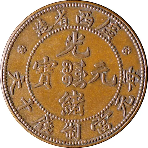 造省西廣 光 寶 ᠪᠣᠣ ᠯᡠᠠᡳ 元 緒 文十錢制當元每 (Translation: Made in Kwangsi Province Guangxu (Emperor) / Yuanbao (Original currency) Boo-lui (mint) Worth 10 Cash currency in Yuan) |